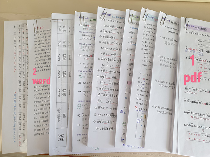 매과 4개이고 마지막 수업 제외 18개과 해서 총 70여개 정도나 돼서 이거 매일 해가면 내 실력에 겸손해 지기도 하고 선생님이 틀린 부분 고쳐 주셔서 일본어다운