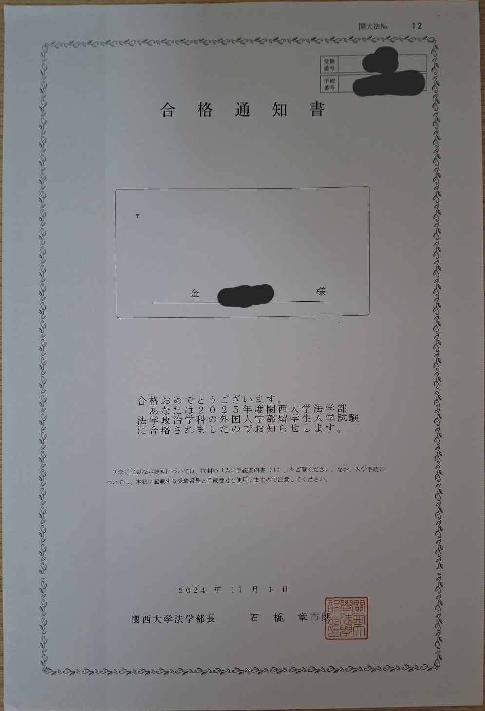 키시카와 선생님과 2월부터 9월까지 기술수업 및 지망이유서, 소논문, 면접준비를 함께 하였습니다. EJU 총 준비기간은 2월부터 6월까지, 총 4개월이고 이후 지망이유서 및 면접수업을 병행하면서 본고사준비를 했습니다. 준비기간이 다른학생에 비해 조금 짧아 걱정을 많이 하였지만, 다행히 전부터 목표로 했던 도시샤대학에 합격하였고 이밖에도 리츠메이칸, 칸사이 대학교 법학부에 합격했습니다.