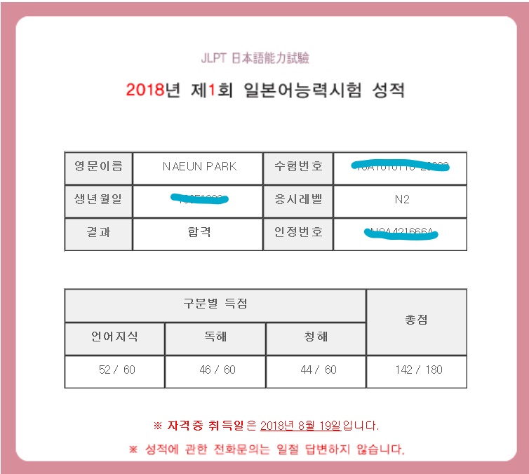 과락 걱정했었는데 N2 140으로 무사 합격했습니다