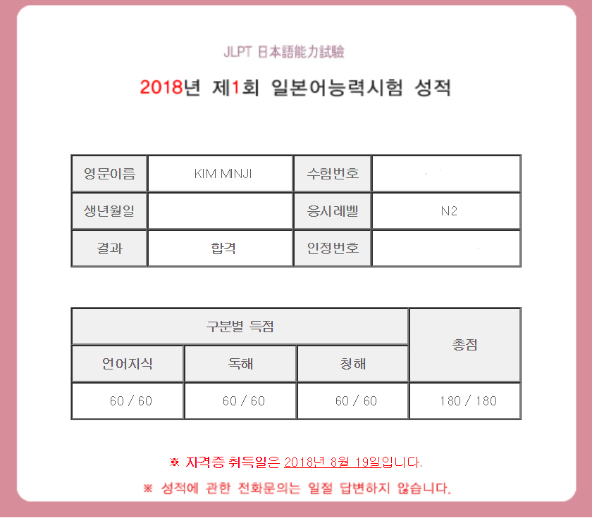 덕분에 180점 만점으로 N2 합격하게되었습니다.