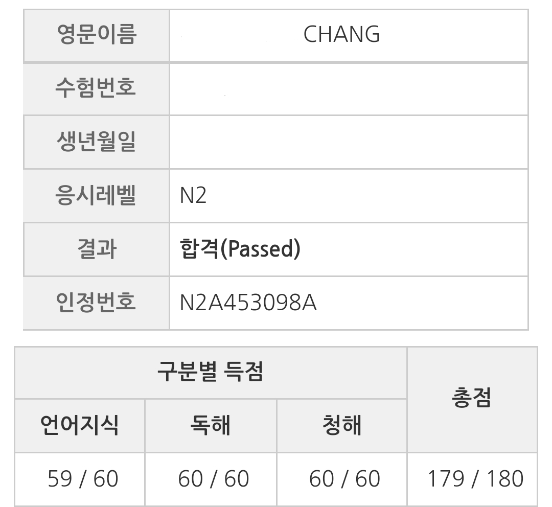 김숙경 선생님 N2 3개월 수강하고 합격했습니당
