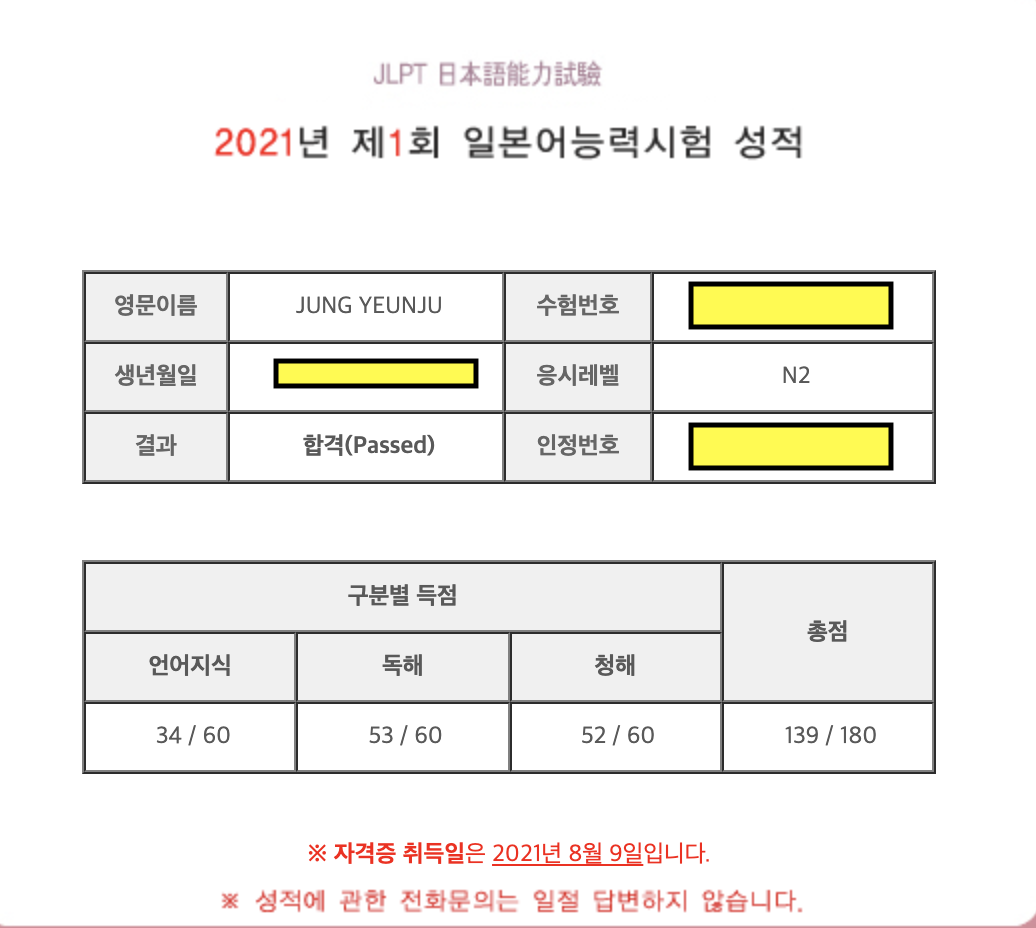 저는 작년 7월 종로 N3반으로 수빈 쌤을 처음 만났습니다. 종로에서 N3 강좌를 한 달정도 듣다가 N2 반으로 올라가도 괜찮겠다는 제안을 받았습니다. 선생님께서는 이제부터 강남에서만 N2를 진행한다는 소식을 듣고 바로 강남으로 따라 갔습니다. 사실 서울에서 거주하고 있지 않아 통학하는게 힘들었지만 JLPT 주말반을 들으러 고속버스를 타고 강남을 갈 정도로 수빈 쌤의 수업은 특별했습니다! N2를 2~3달 준비했지만 무려 4일?전에 2020년 2회차 시험이 취소되면서 ^^... 내년 7월을 기약했습니다. 그래서 2021년 6월 한달간 다시 강남점에서 수빈 쌤의 주말반 수업을 단기로 들었고, 7월에 응시한 시험에서 139점이라는 비교적 만족스러운 성적을 얻을 수 있었습니다.