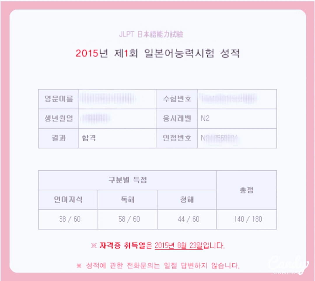 (그리 자랑할만한 총점은 아니지만.. 이름도 다 가렸으니 합격 인증샷을 남겨보겠습니다..ㅎㅎ;;) ▶ 시험일 : 2015년 7월 5일 (합격발표일 : 8월 26일) ▷ N2반 수강기간 : 4개월 ▶ 토요오후반 / 경정윤선생님 시사일본어학원을 다니기 시작한 것은 1월부터였는데, 중,고등학교 제2외국어수업을 통해 히라가나/가타카나와 간단한 일상회화 정도만 알고있다가, 대학교 2학년까지 아~무 일본어도 접해보지 않았던 상태로 1월이었어요..ㅎ 그렇게 갑자기 학원을 다니기 시작한 이유는, 이중전공으로 일어일문학과를 선택했기 때문이었어요. 본전공은 경영인데, 일본어 스펙을 쌓고싶어서였죠..ㅠ_ㅠ 1월에는 장수현 선생님의 1개월 문법완성 강의와 김민아 선생님의 초급한자 강의를 들었구요, 2월에 바로 세컨드스텝과 페라페라를 듣기 시작했는데, 이 때 경정윤 선생님을 만났어요ㅋㅋ(세컨드스텝 홀수반) 많이 어려울까봐 걱정을 엄청 하고 첫 수업에 들어갔는데, 긴장한 기색을 알아차리셨는지 선생님께서 긴장 안해도 된다고ㅋㅋ 일주일만 지나면 바로 적응할 수 있을 거라고 말씀해주시고, 더 열심히 할 수 있도록 구체적으로 무엇을 해야하는지 확실하게 가르쳐주셔서 정말 좋았어요. 그렇게 2월 말이 되고, 3월부터는 주말반으로 N3대비반 수업을 들어볼까 하려던 차에, 경정윤 선생님께서 N2 수업을 하신다길래..! 실력은 N3 대비해도 모자랄 판이지만 정말 열심히 하겠다고ㅠㅠ 떼쓰듯이 N2 수업을 듣게 되었어요ㅋㅋㅋ (쌤 알라뷰><) 3,4월에는 어휘가 정말 부족하고 또 부족해서 단어 외우는 데만 온통 집중했던 거 같아요.. 수업시간에 독해지문 등을 돌아가면서 한 문장씩 읽게 하시는데, 저 혼자 겁나 더듬더듬 읽어서..으윽.. 다른 분들께 죄송해서 더 열심히 했던 거 같아요ㅠㅠ ㅋㅋ나중에 읽기 시키시는 이유를 여쭤봤더니, 학생들이 자꾸 졸아서래요ㅋㅋㅋ 그런데 저는 4개월 동안 이 읽기 연습을 한 것이 한자 읽기에 가장 도움이 됐던 것 같아요. 그리고 매 주 20개 정도씩 나눠주시는 기능어도 있었는데, 그게 기출문제에 그대로 나오고, 매번 반복되어서 문자,어휘보다 쉽게 외울 수 있었어요. 5,6월에도 역시 문자,어휘에 중점을 두고 공부했어요. 나눠주신 단어장과 기출문제를 그대로 연습장에 옮겨쓰면서 익숙해지려고 노력했어요. 아..그치만 막상 학기 중에 학원 다니는 거 정말 힘들었어요ㅠ_ㅠ 7전공이었는데..과제도 있고 시험도 있고..그래서 집(포항)에도 잘 못가고.. 특히 시험기간이었던 4월과 6월에는 N2공부가 많이 느슨해지기도 했어요ㅠ_ㅠ 그래도 선생님께서는 결석에 대해서만큼은 정말 엄격하셨어요. 단어시험도 감안하고, 읽기 시키는 거도 점프시킬테니, 감이 떨어지지 않게 수업에 만큼은 꼭 오라고 잡아주셨어요. 그것 때문에 시험 전까지 매 달 쉬지않고 다닐 수 있었던 것 같아요. 특히 가장 기억에 남는 것은 6월말(기말고사 끝나고)부터 시험직전까지 스터디해주신 거에요ㅠㅠ 6월 수강생이 저 포함 3명이었는데(거의 학원이 아니라 과외였죠ㅋㅋ), 평일에도 1~2시간씩 단어시험과 기출문제 풀이를 해주셨어요ㅋㅋㅠㅠ 힝ㅋㅋ 수업이 진짜 딱딱하긴 커녕 맨날 웃기고..웃겨서 눈물나고 막..시험안치고 계속 수업하고 싶을 정도였어요..ㅠㅠ 이렇게 재미있게 4개월동안 수업하고 시험까지 합격하고 나니까 정말 좋아요.. 학기 중에 교환학생 서류도 준비해서, 다음학기부터는 1년 간 교환학생으로 일본에서 공부하게 되었어요. 도중에 자신감이 많이 부족해서 "이렇게 붙어도 가서 잘 할 수 있을까요ㅠㅠ"하고 선생님께 상담한 적도 있었는데, "지금처럼만 계속 꾸준히 공부한다면, 문제없을거에요!^^ 꼭 지원하세요. 가고싶어도 못가는 사람 많아요." 하고 격려해주기도 하셨답니다ㅠㅠ 다음 시험을 준비하실 N2수험생분들께 경정윤 선생님의 강의 꼭 추천 드리고 싶구요, 만점합격 기원합니당!!ㅎㅎ 선생님 감사합니다~^^ |