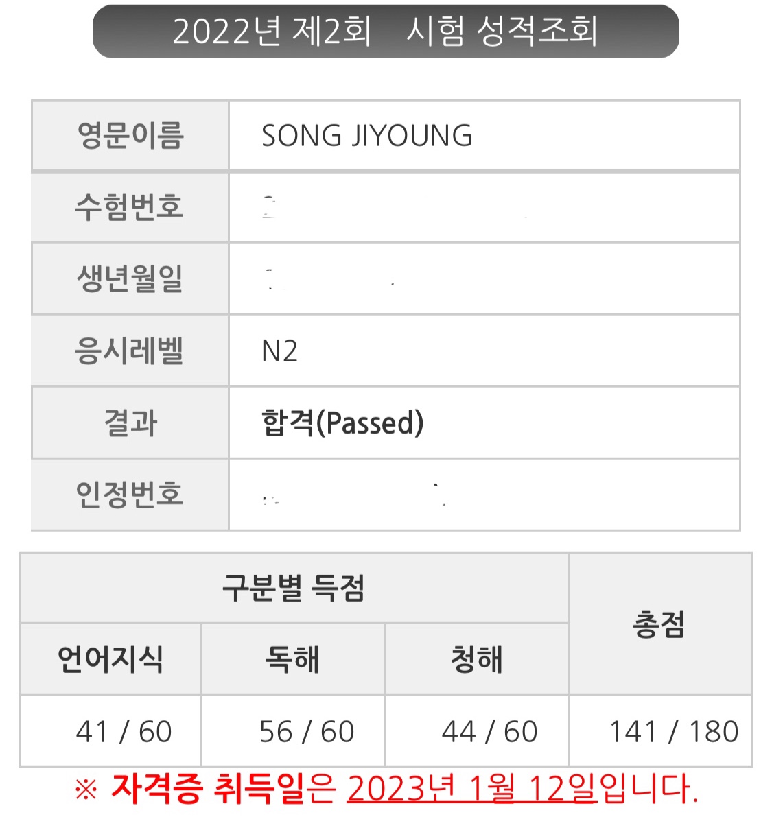 N2 합격!