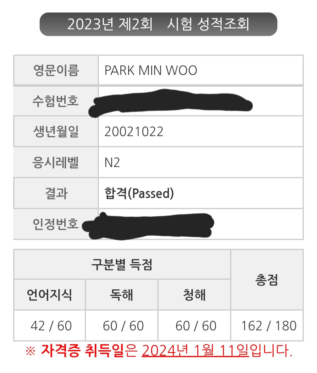 김숙경 선생님 덕분에 N2 합격했습니다!