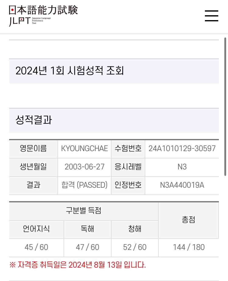 JLPT N3합격은 민경선생님과!!^^