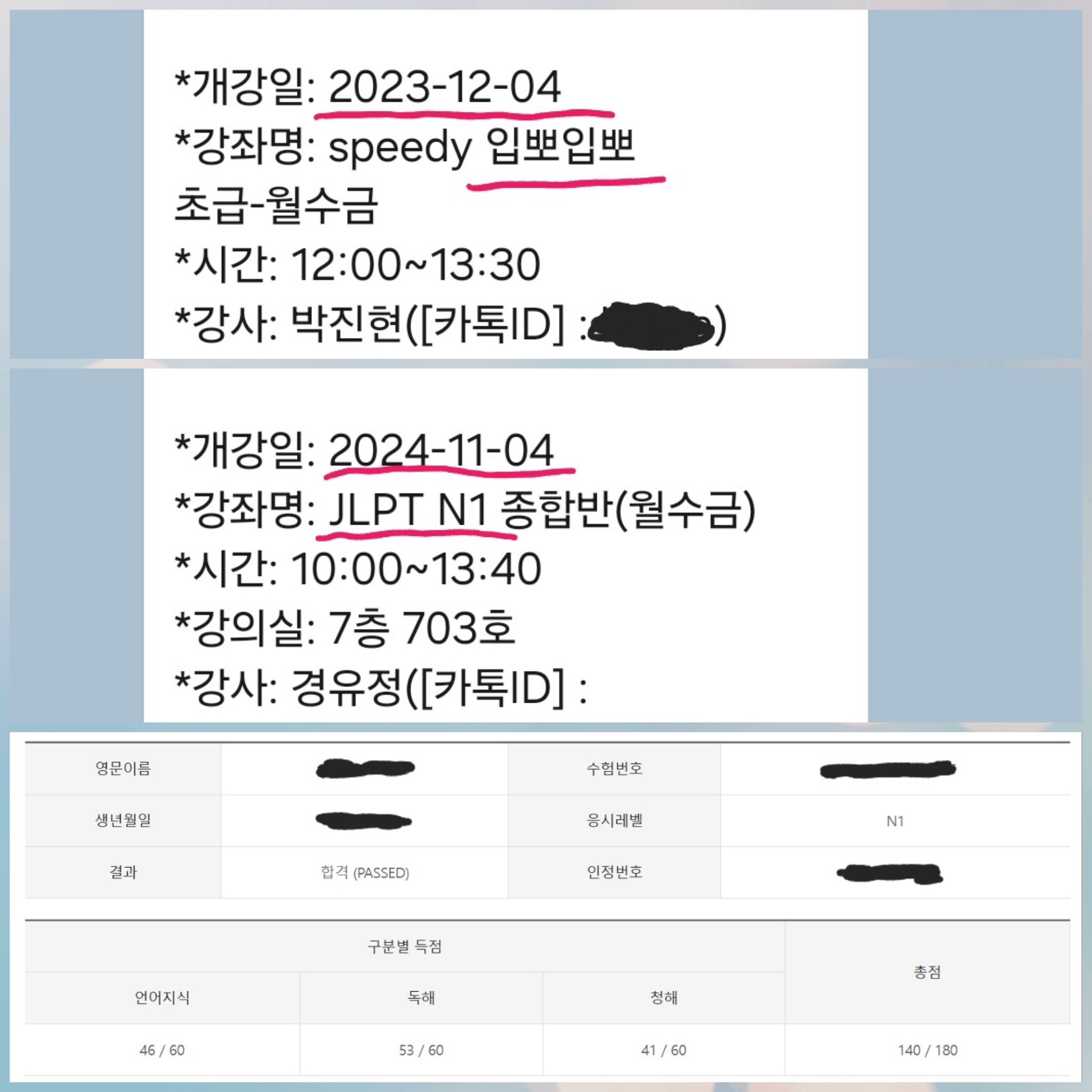 2024년 12월 N1 응시. 2025년 1월 N1 140점. (180점 만점이고 합격점은 100점입니다.)