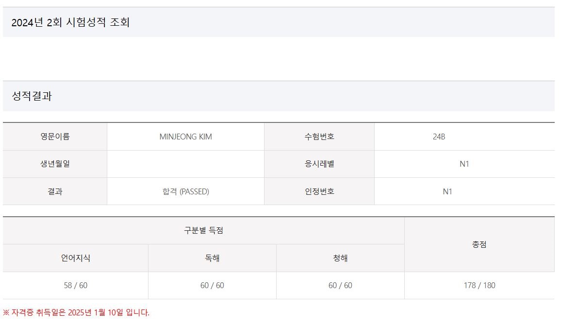 황지영 선생님 덕분에 JLPT N1 고득점 받았습니다~!