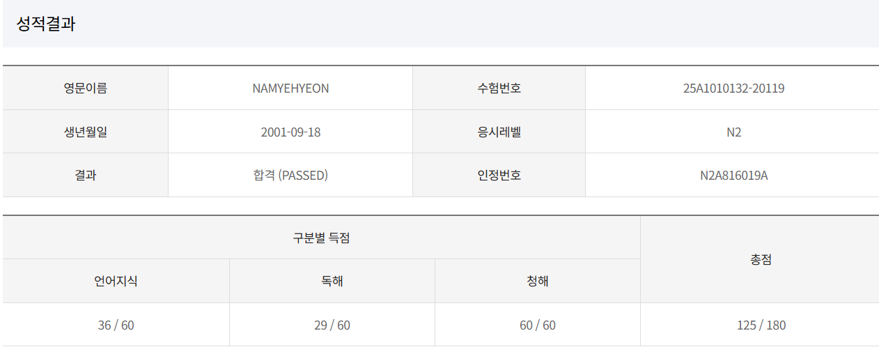 특히 단어와 문법 정리가 체계적으로 이루어져 시험에 큰 도움이 되었습니다. 선생님의 꼼꼼한 피드백 덕분에 청해 실력이 많이 향상되었습니다. 이번 경험을 바탕으로 앞으로 N1에도 도전하고 싶습니다. |