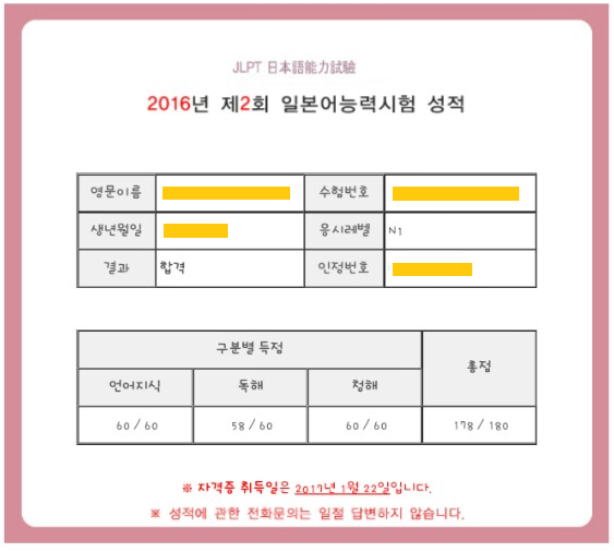 JLPT N1 합격했습니다!