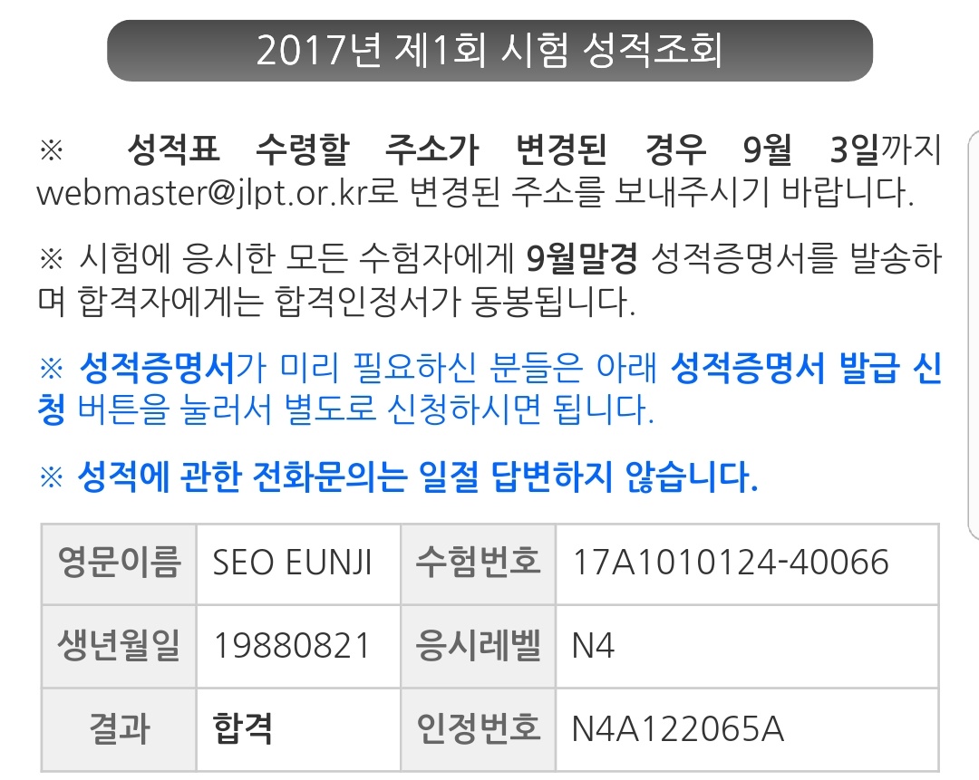 8년만에 하는 공부에 두려움이 많았는데, 2달만에 한고운선생님께서 기본을 잘 알려주셔서 합격했습니다. 감사합니다^.^ |