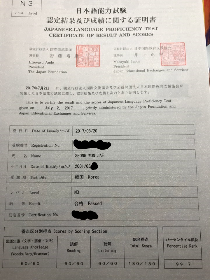 어느 새 N3시험을 치룬지 몇 달이 지났습니다만, 이제서야 후기를 남기게 되어 정말 죄송합니다. 선생님께서 수업해주신 덕분에 무사히 합격했습니다. 비록 시험 한달 전 부터 듣기 시작한 수업이었지만, 선생님께서 워낙 잘 가르쳐주신덕에 시험도 술술 풀리고 고득점을 예상했지만 만점 까지는 바라지도 못하던 터라 처음엔 많이 놀랐습니다. 혹시라도 홈페이지에서 확인한 결과가 다른 사람과 바뀐건가 싶어서 바로 합격 후기를 남기러 오지도 못하고 증서가 오기만을 기다렸어요ㅎㅎ,, 다행히도 받아 본 증서 속 결과는 만점이었고, 안심하고 후기를 올려야지- 하던게 여러모로 겹쳐 이제서야 남기게 되었습니다. N3의 합격 후기에서 남기기는 뭐 하지만, 선생님께서도 수업 도중 말씀해주셨듯 N3가 저의 종착점은 아닙니다. 당장 준비하고 있는 N2만 해도, N3와는 사뭇 다른 난이도임을 체감하고 있습니다. N3공부하듯 공부하니, 선생님께 혼나기 일수입니다... 더 열심히 해야할텐데요ㅜ 감사히 N2를 무사히 넘긴다 해도, N1이나 EJU같이 더 어려운 시험들이 많이 남아있습니다. 허나 N3때 선생님께 배워둔 것들은 이렇게 고마운 결과로 돌아왔고, 앞으로 점점 더 어려운 것들을 배워나갈 때 든든한 밑바탕이 되어주겠죠. 이에 정말 진심으로 감사드립니다. 앞으로 N2도, N1도. 혹시 시험을 치게 된다면 EJU도 좋은 결과를 받을 수 있도록 노력하겠습니다.