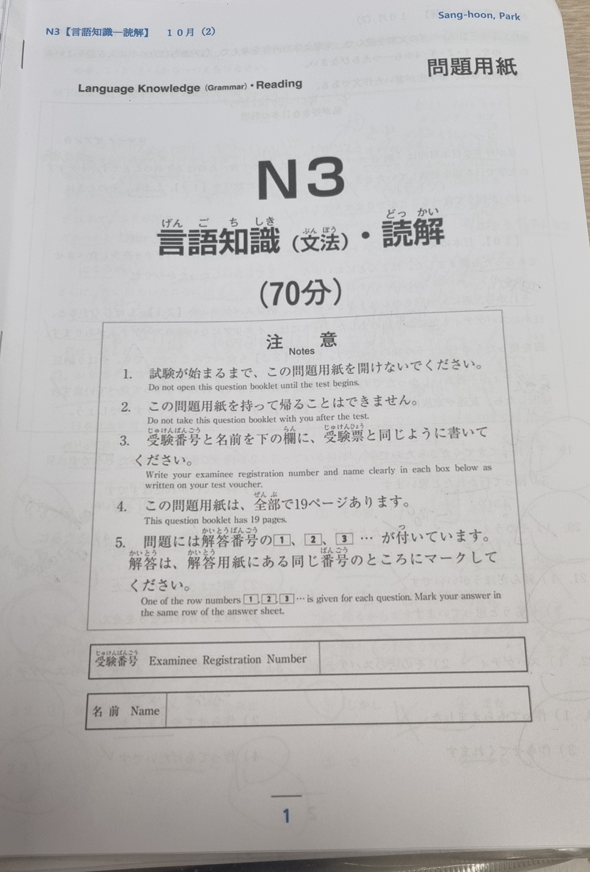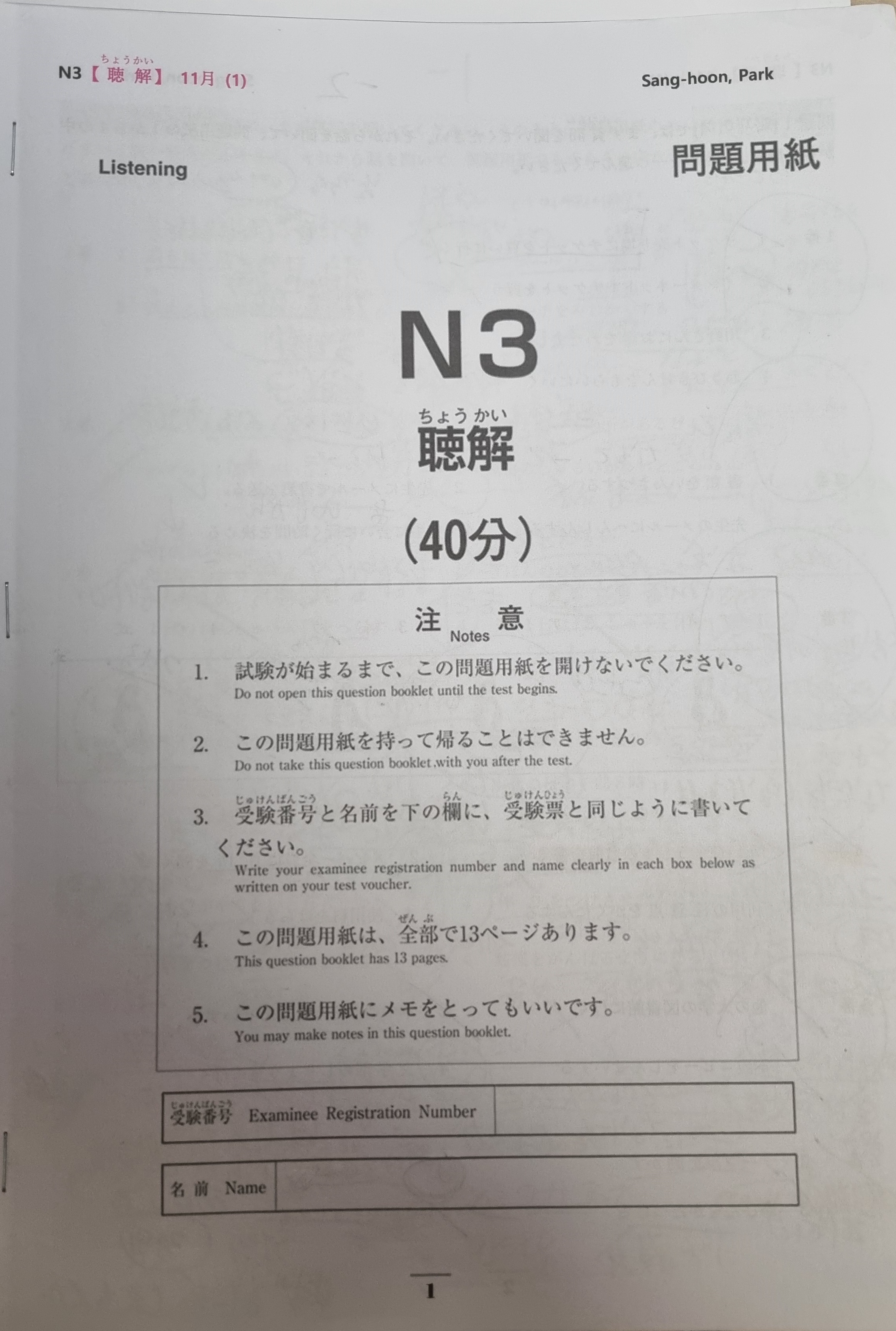 JLPT N3 - JLPT N3 종합반(매일반,100분,23회,12/5종강)