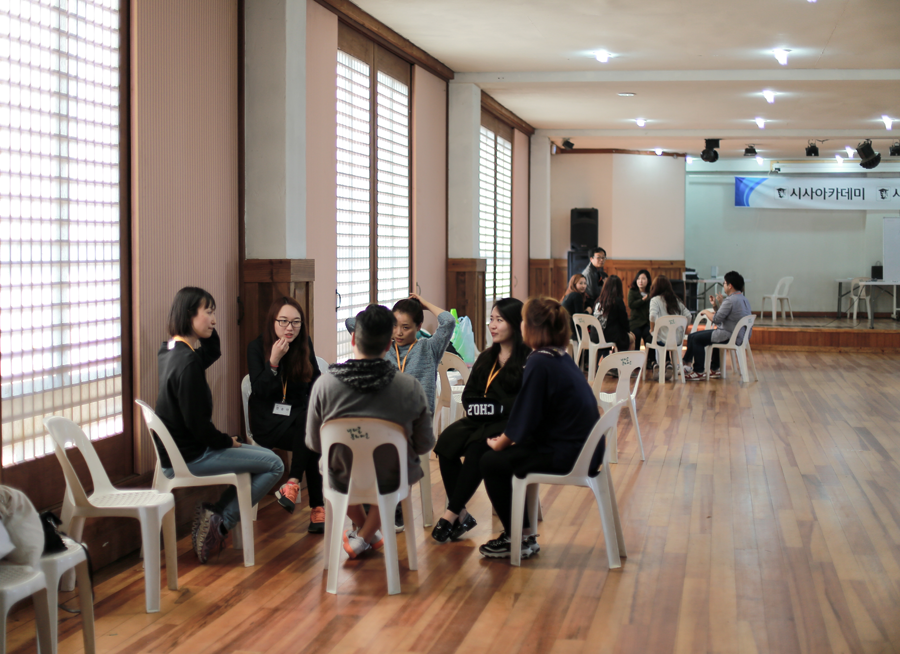 "모두들 강당으로 모여주세요"라는 사회자의 말씀에 따라 아주 질서 있게 조별로 줄을 선 시사아카데미&시사북스!!