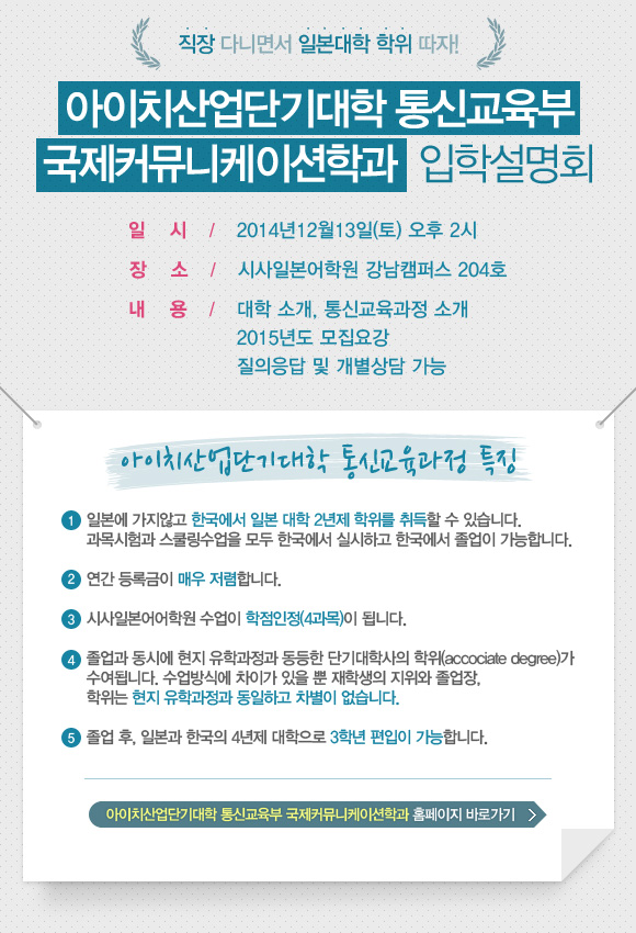 아이치산업단기대학 통신교육부 국제커뮤니케이션학과 입학설명회