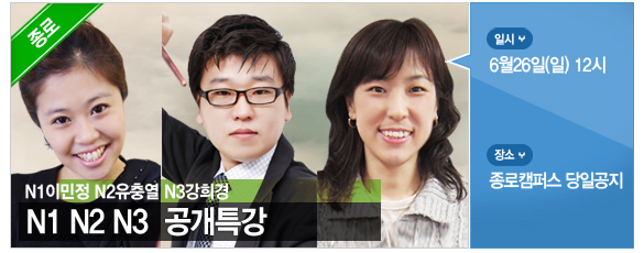 * JLPT N1 이민정 선생님 * JLPT N2 유충열 선생님 * JLPT N3 강희경 선생님