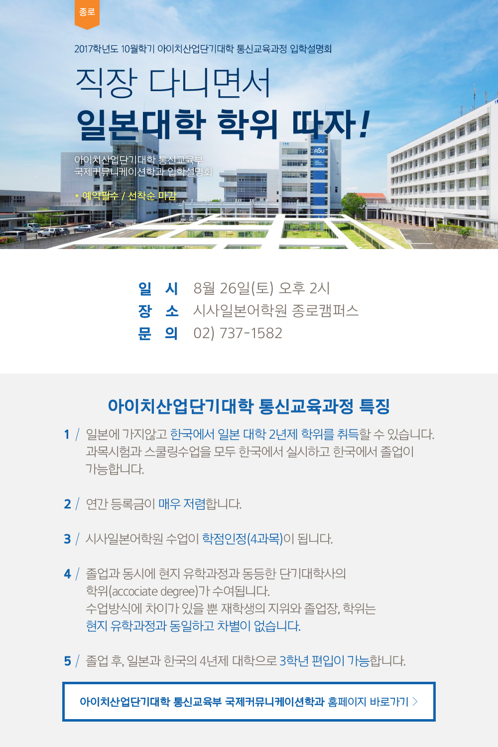 아이치산업단기대학 입학설명회 - 종로