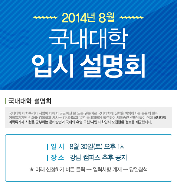 2014년 8월 국내대학 입시 설명회 - 신촌