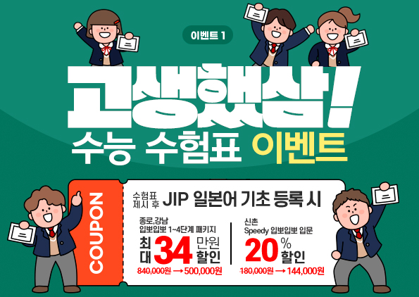 ※ 이벤트 미적용 강좌 : EJU 소수정예반(1:1)수업, 1:1 프리미엄