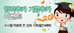수시합격생께 전강좌 10%할인혜택을 드립니다. 합격증을 제시하셔야 하며, 프로그램강좌는 최대 2만원까지 할인가능합니다.