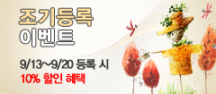 멤버쉽 카드로 할인받고, 할인쿠폰도 꼼꼼하게 챙기는 알뜰한 수강생이라면 절대 놓칠 수 없다! 조기등록만으로도 1~2만원을 아낄 수 있는 기회! 9월13일(월)부터 9월20일(월)사이에 등록하시는 모든 분께 일반단과 수강료 10% 할인혜택을 드립니다. |