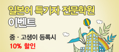 일본어특기자 전문학원 이벤트 중학생때 부터 미리 상담 받고 입시를 준비하세요. 빨리 준비할수록 갈 수 있는 대학이 더 많아집니다! -중·고생이 등록시 10%(프로그램 강좌 최대 2만원) 할인혜택을 드립니다. |