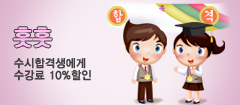 훗훗 다른 친구들보다 조금 일찍 찾은 몸과 마음의 여유. 일본어에 조금만 나눠주세요. 2011년도 수시 합격하신 분께 10%(프로그램강좌 최대 2만원) 할인혜택을 드립니다. * 증명서를 지참해주세요. |