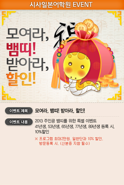 모여라, 뱀띠! 받아라, 할인!
