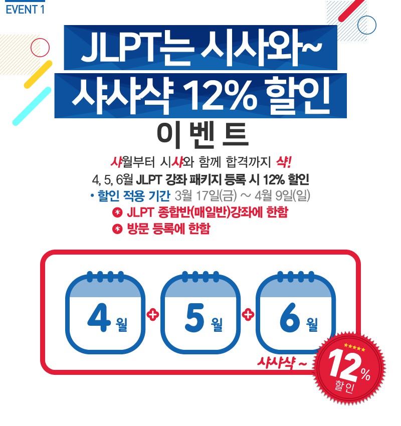 JLPT는 시사와~샤샤샥12%할인이벤트
