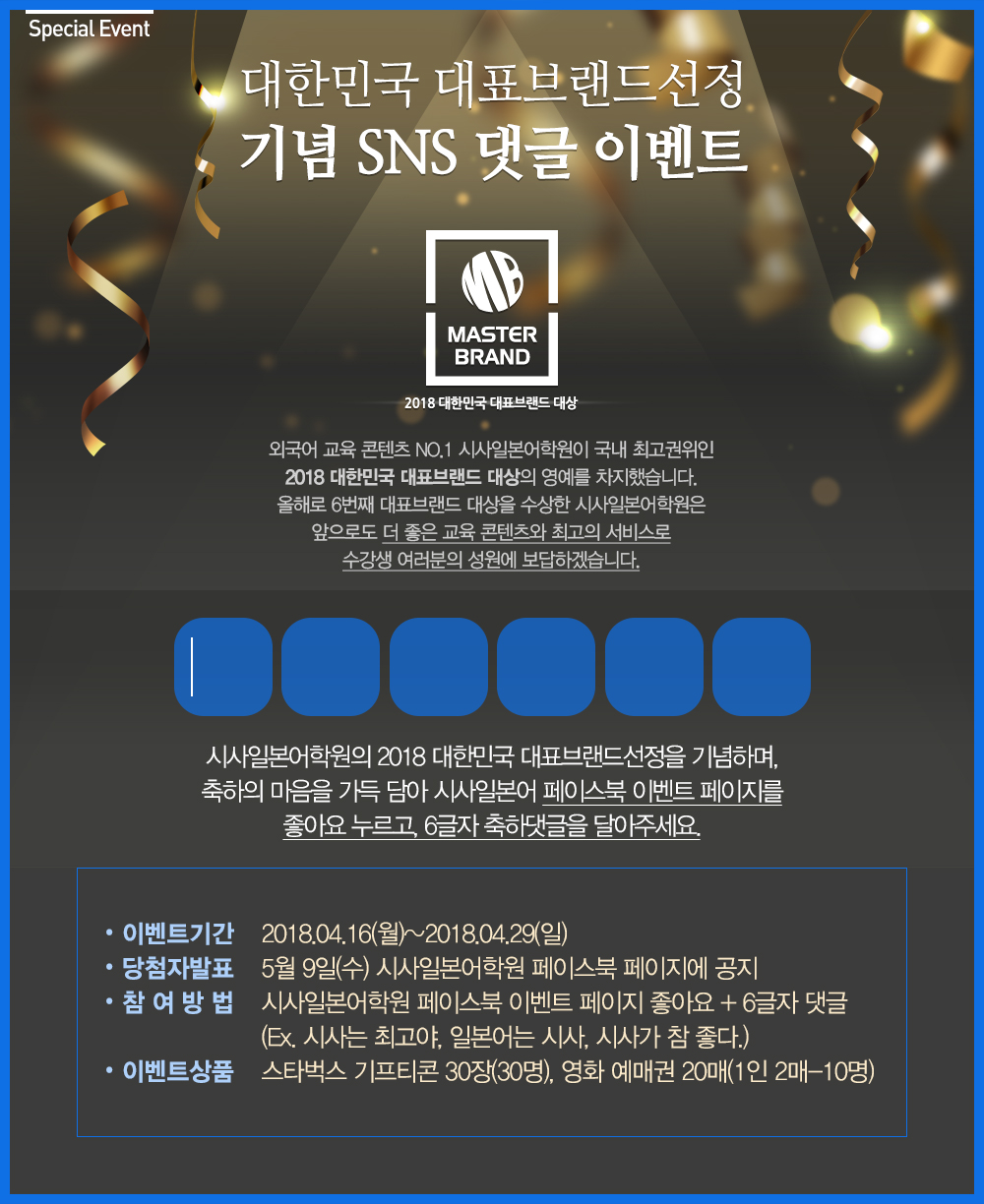 대한민국 대표브랜드 선정 기념 SNS 댓글 이벤트