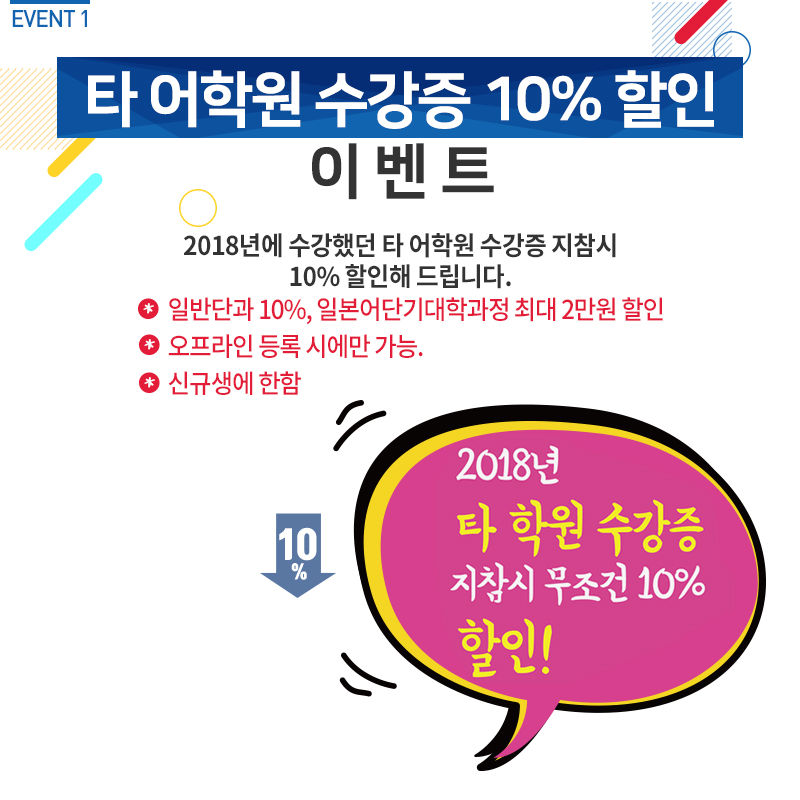 타 어학원 수강증 10% 할인 이벤트