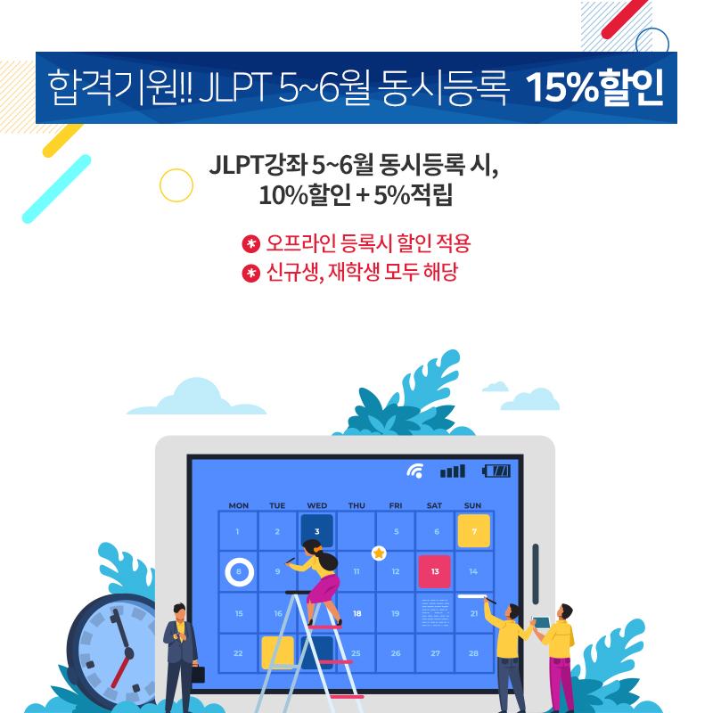 합격기원!! JLPT 5~6월 동시등록 15% 할인!