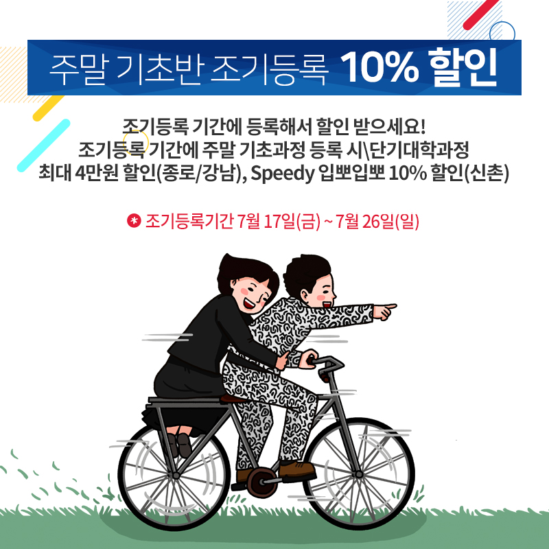 주말 기초반 조기등록 10%할인!