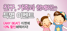 하나. 가족이 함께 수강신청을 하시면 선착순 20명에게 <ANY BEAT> 티켓을 드리고 (1인 2매), 모든 분에게 10% 할인혜택을 드립니다.