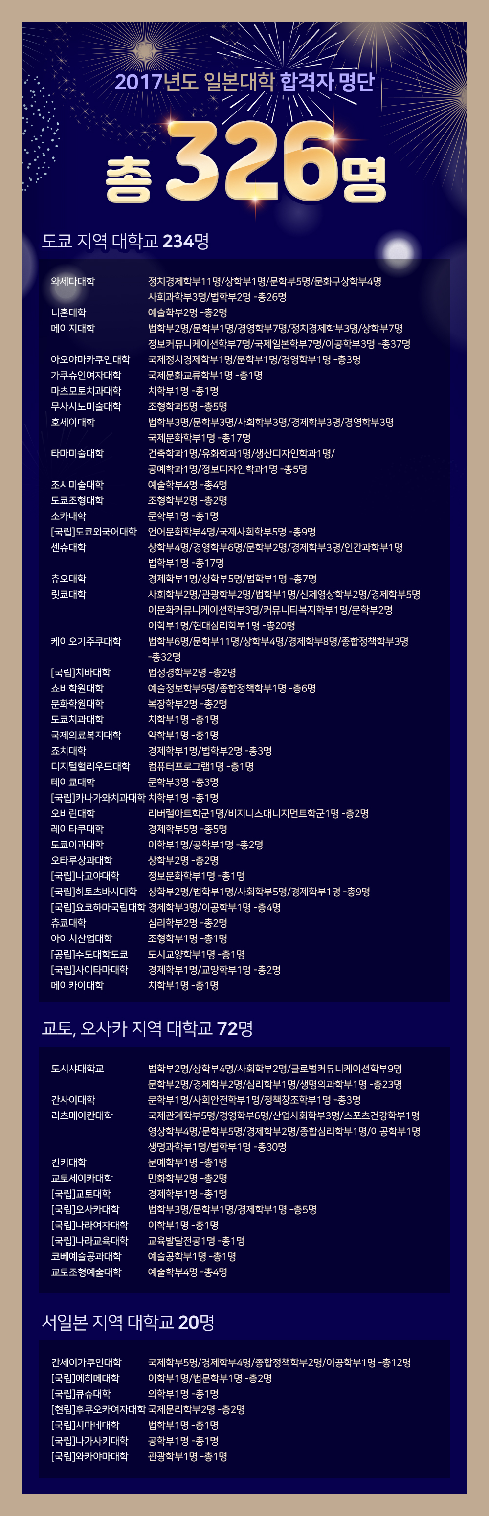 2017년도 일본대학 합격자 명단