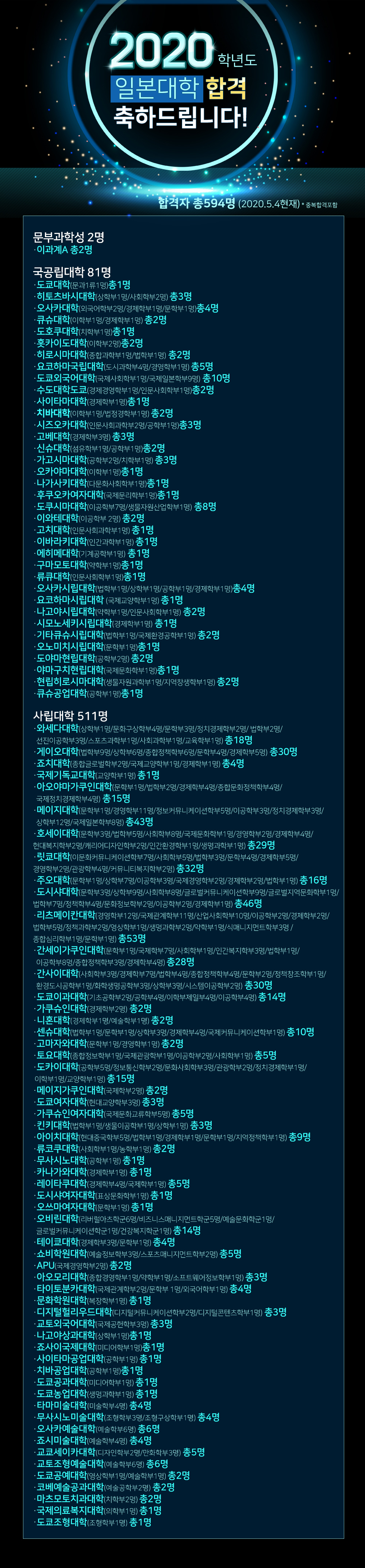 2021년도 일본대학 합격자 명단(2020년 12월 기준)