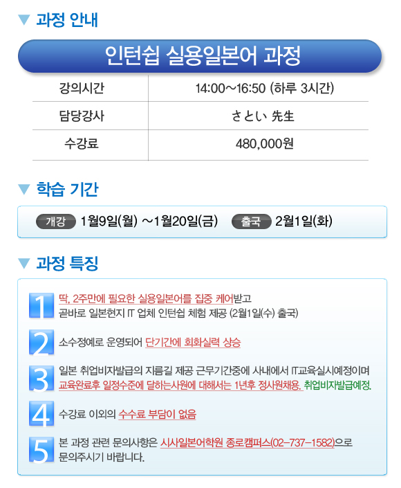 일본 취업 인턴쉽 실용일본어과정 오픈!!