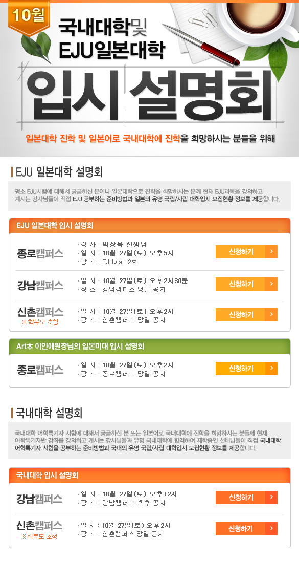 10월 국내대학및 EJU일본대학 설명회안내!!