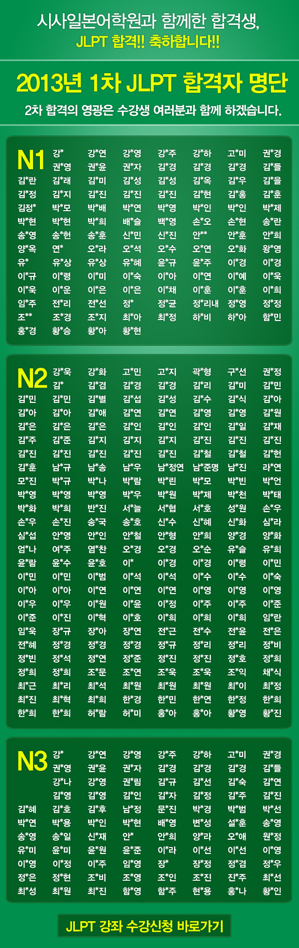 2013년 1차 JLPT 합격!! 축하합니다!!!