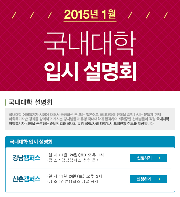 2015년 1월 국내대학 입시 설명회
