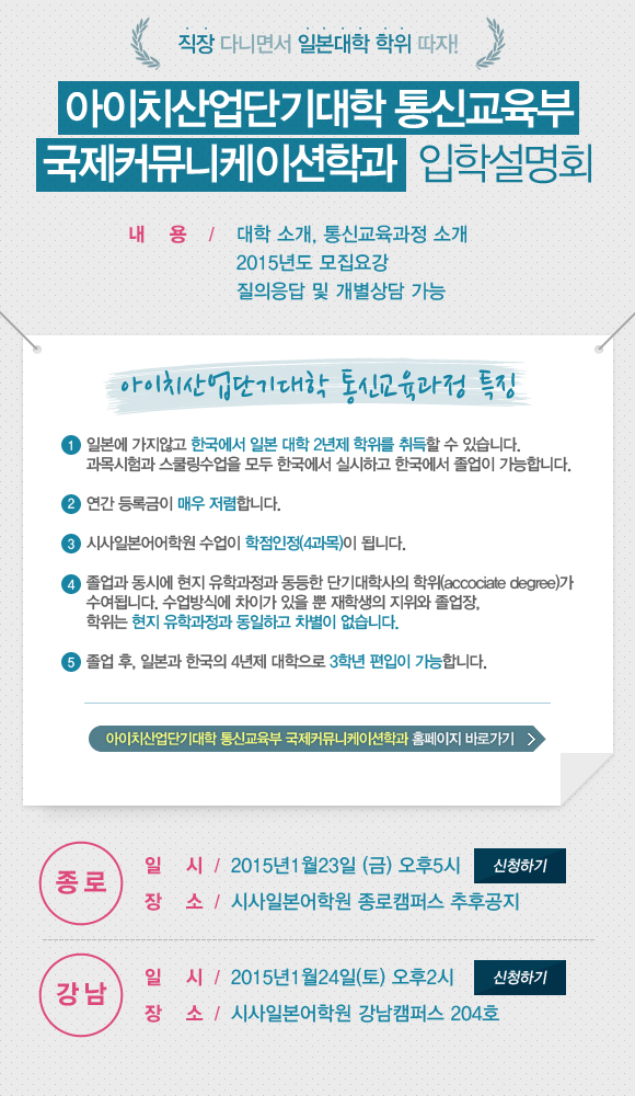아이치산업단기대학 통신교육부 국제커뮤니케이션학과 입학설명회