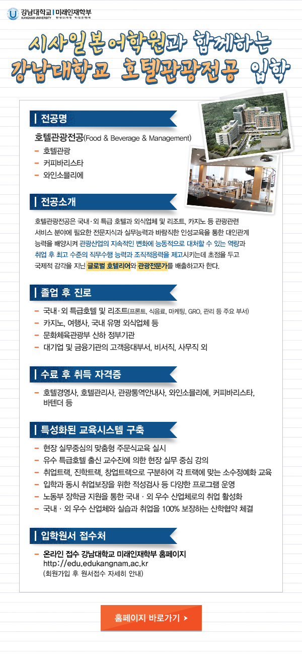 강남대학교 호텔관광전공 입학 안내