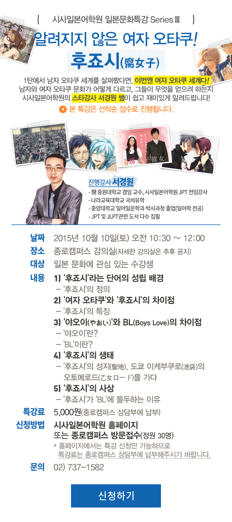 시사일본어학원 일본문화특강Ⅲ- 알려지지 않은 여자 오타쿠! 후죠시(腐女子)