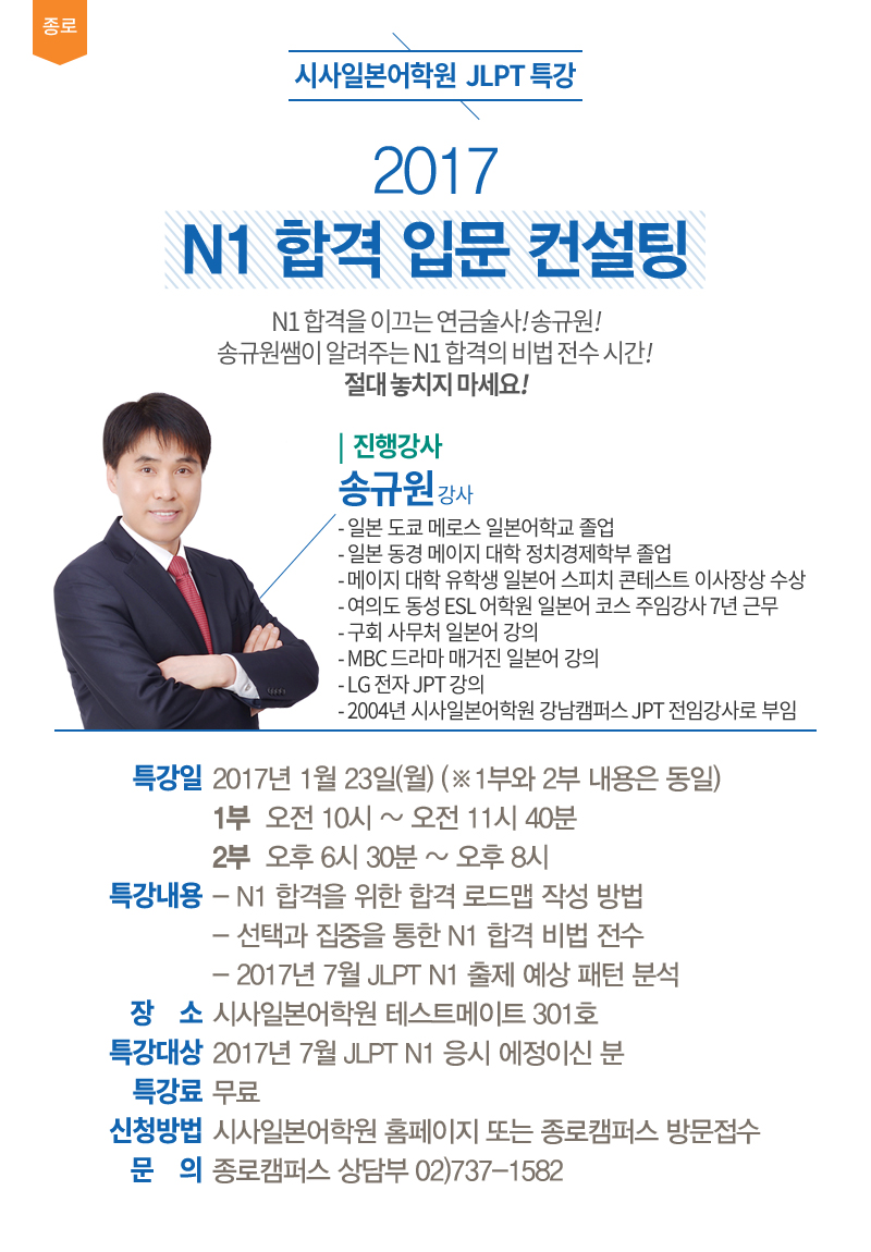 시사일본어학원 JLPT 특강 : 2017 N1 합격 입문 컨설팅