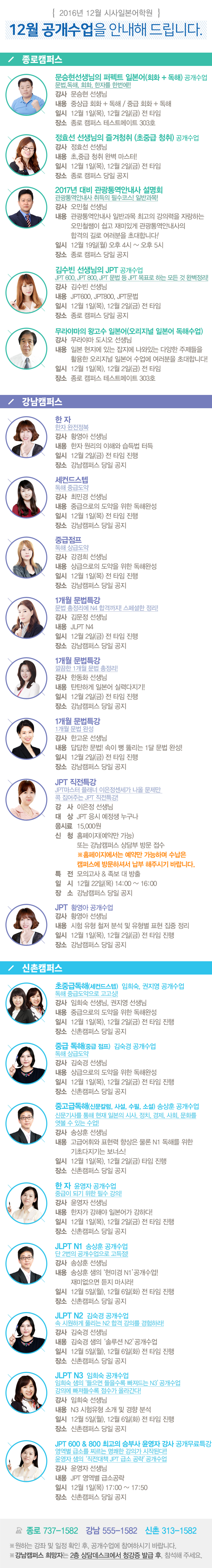 2016년 12월 공개수업을 안내해 드립니다.