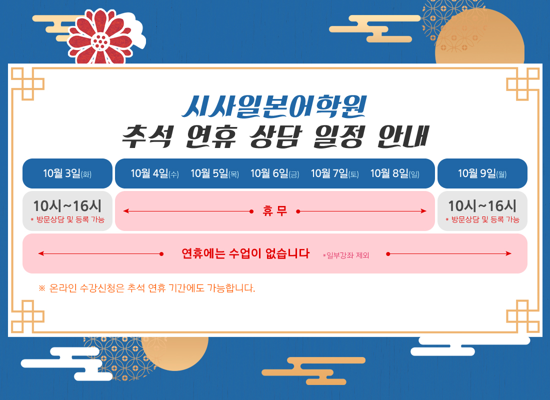 일본어 기초, 추석연휴에도 절찬리 등록중
