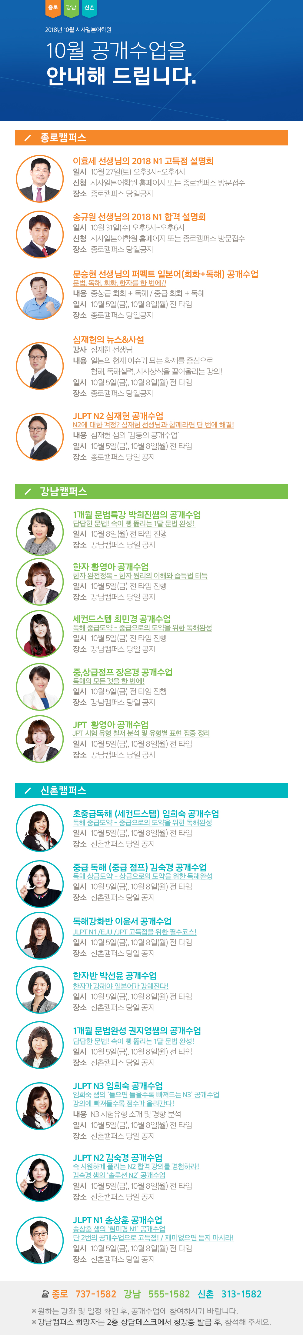 2018년 10월 개강일정 안내