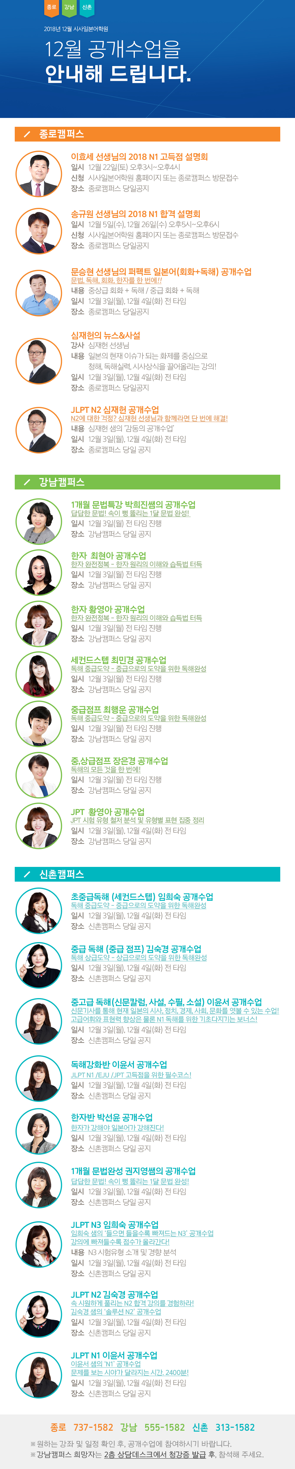 2018년 12월 개강일정 안내