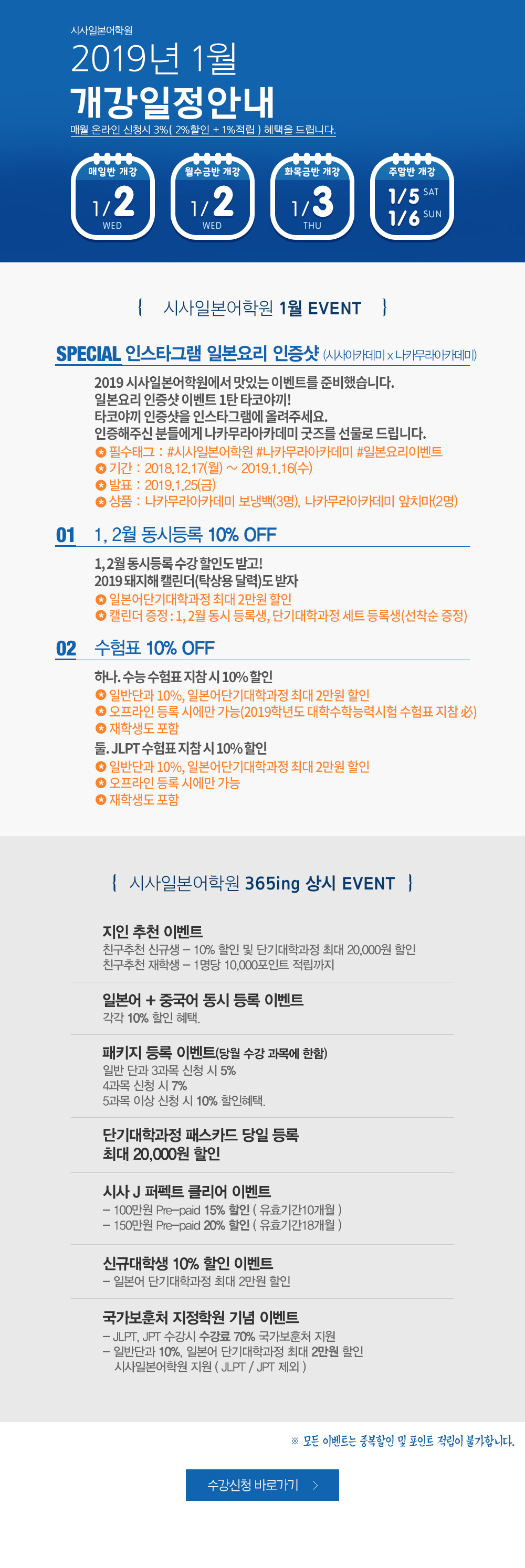 2019년 1월 개강일정 안내
