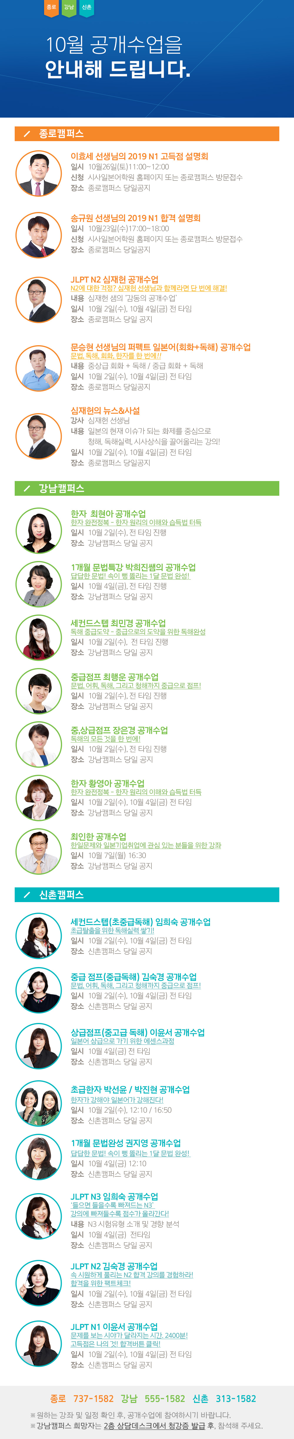 2019년 10월 개강일정 안내